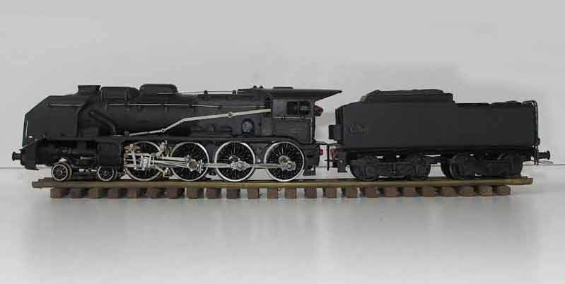 Ce modèle en bronze intègre d'une manière satisfaisante le tender moteur Jouef 34P en
